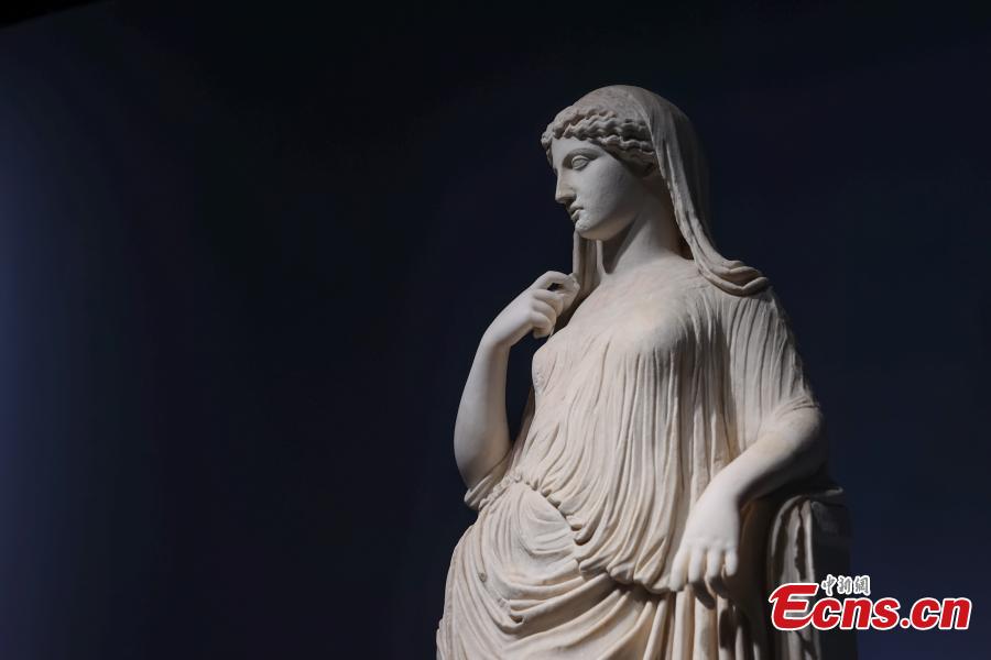 A sculpture is displayed during an exhibition titled "Masterpieces from the National Archaeological Museum of Naples" at the China Millennium Monument Art Museum in Beijing, June 12, 2023. (Photo: China News Service/Jia Tianyong)