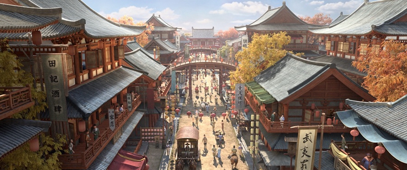 A still from the animated movie Chang’an showing prosperous scenery in the capital city Chang’an during the Tang Dynasty.