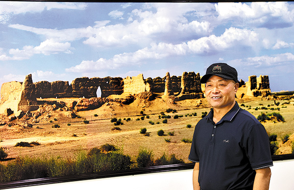Zhang Jianjun and his wife Chen Wanying have been guarding the Hecang Fortress at the Site of Yumen Pass in Dunhuang for 11 years.[Photo by Jiang Dong/China Daily]