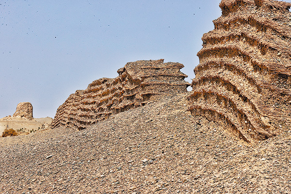 Deep in the Gobi Desert in Northwest China's Gansu province, remnants of the Han Dynasty (206 BC-AD 220) Great Wall stand firm. One layer of fine sand, plus a layer of reeds or rose willow, tier upon tier, has made it through two millennia, from a military installation to a representative living heritage.