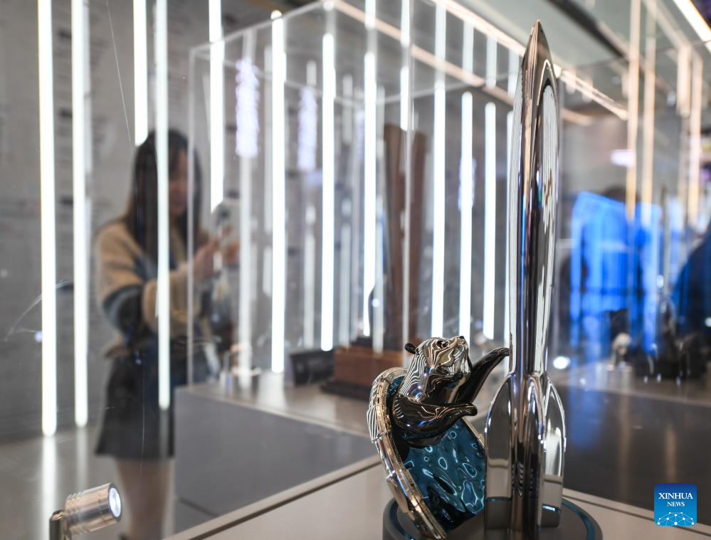 This photo taken on Oct. 19, 2023 shows a trophy for the 2023 Hugo Awards during the 81st World Science Fiction Convention (WorldCon) in Chengdu, southwest China's Sichuan Province. (Xinhua/Wang Xi)