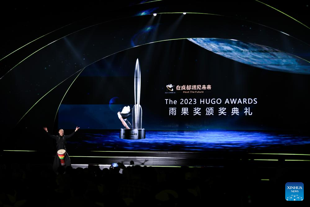 This photo taken on Oct. 21, 2023 shows the award ceremony for the 2023 Hugo Awards during the 81st World Science Fiction Convention (WorldCon) in Chengdu, southwest China's Sichuan Province. (Xinhua/Wang Xi)