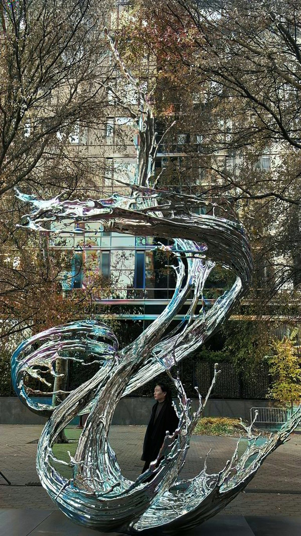 Undercurrent, a steel sculpture by celebrated artist Zheng Lu, is on view until August 2024 in the Dag Hammarskjold Plaza, just outside the United Nations complex in New York. [Photo provided to China Daily]