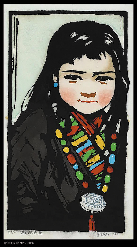 Woodblock print s on show at the China National Academy of Painting's art museum: Tibetan Girl by Li Huanmin. [Photo provided to China Daily]