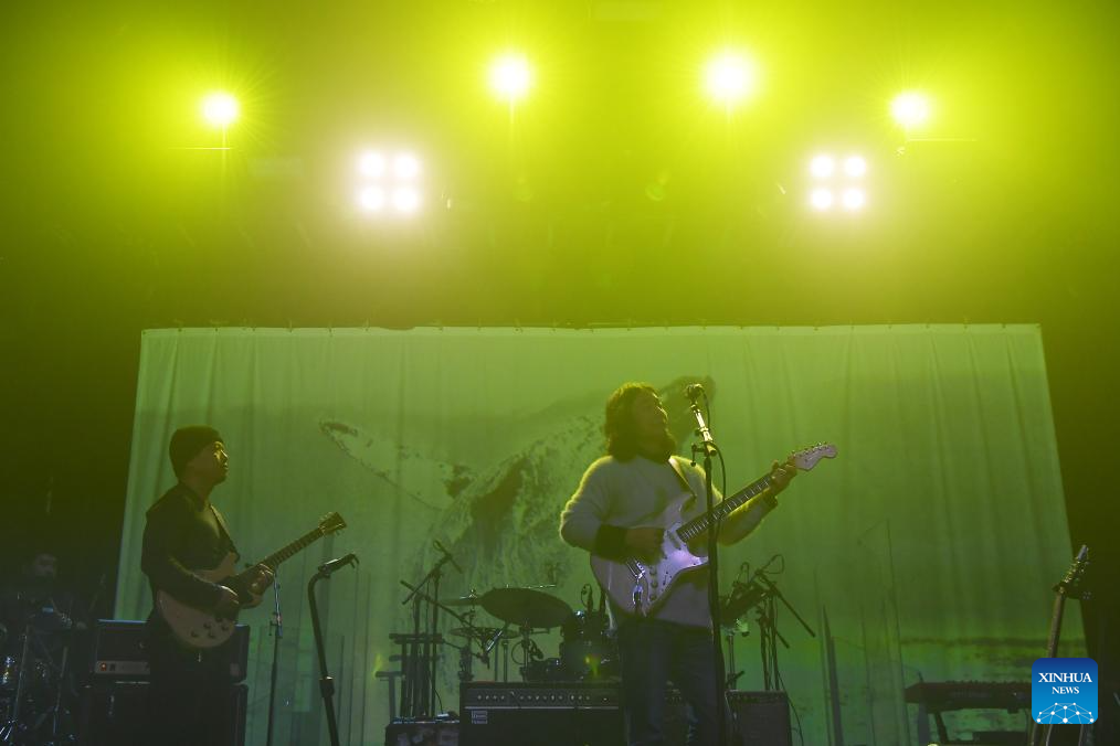 Members of Chinese band The Landlord's Cats perform during a Chinese music festival themed Friends From The East in New York, the United States, Nov. 26, 2023. Friends From The East continued the second leg on Sunday night in New York City, featuring Chinese bands The Landlord's Cats, Omnipotent Youth Society, and Miserable Faith. (Xinhua/Li Rui)