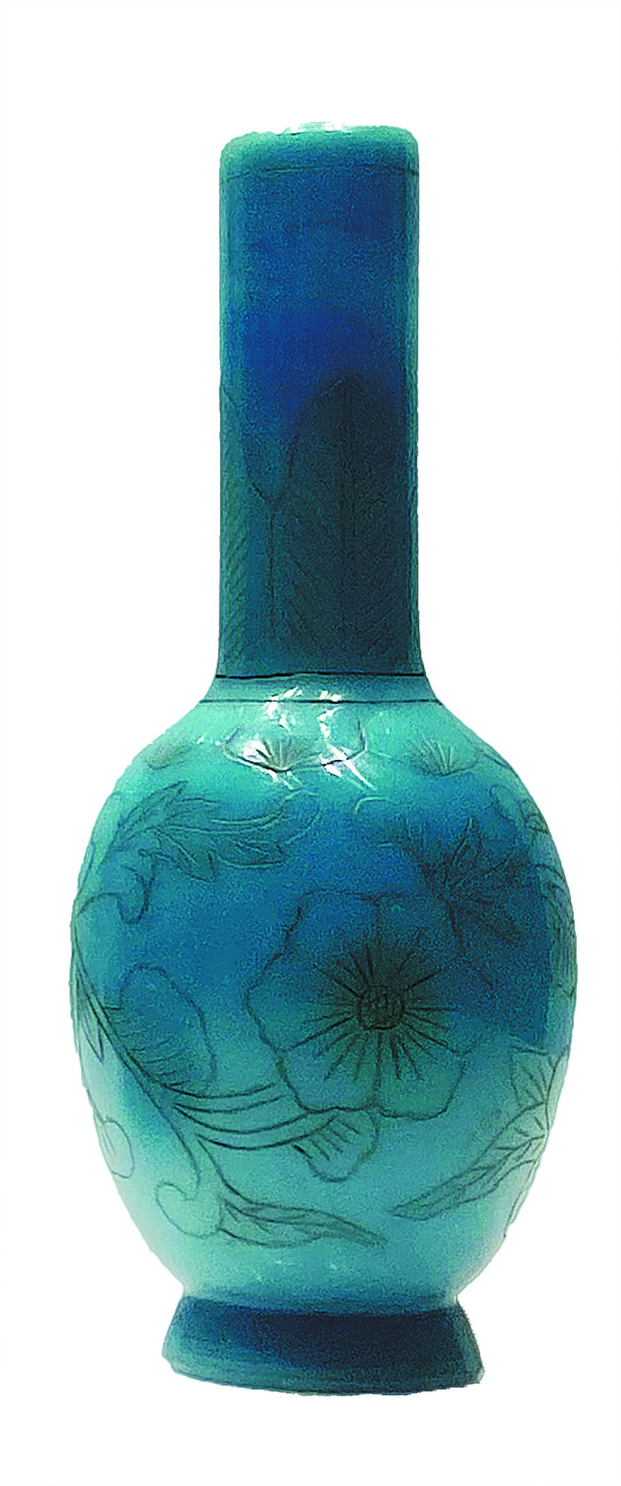 The name was derived from the process, through which metal powders were added and the finished glass yielded shimmering, reflective properties. The technical difficulty makes this type of glass a rarity — there are no more than 40 examples of it in Palace Museum's collection.