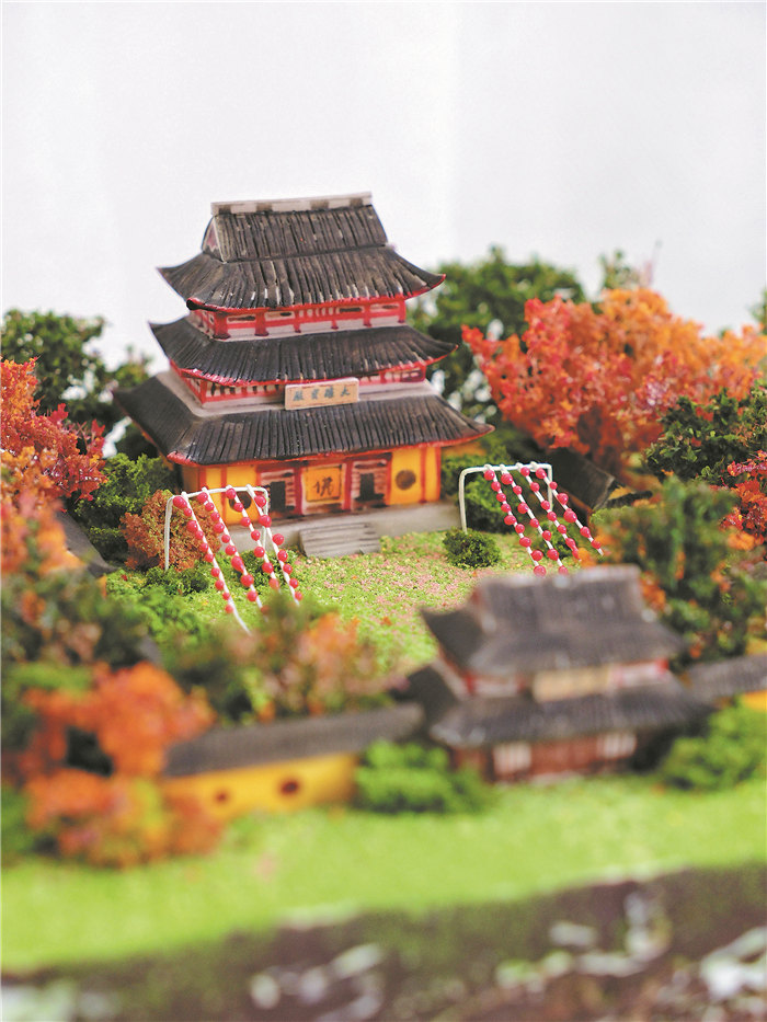 Baker Wang Fang has made cakes depicting 1,800 destinations, including Lingyin Temple from Hangzhou, Zhejiang province. [Photo provided to China Daily]