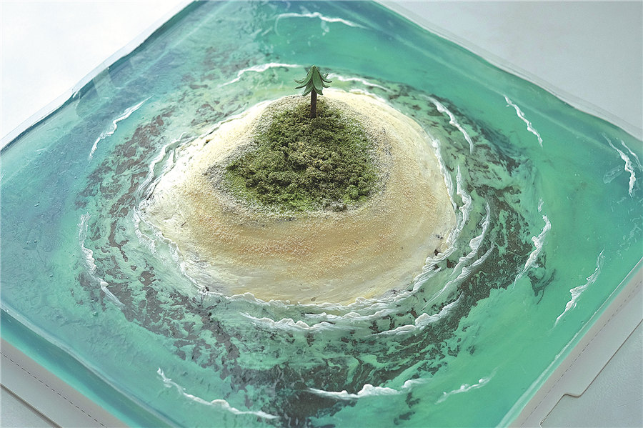 Baker Wang Fang has made cakes depicting 1,800 destinations, including a Pacific island. [Photo provided to China Daily]