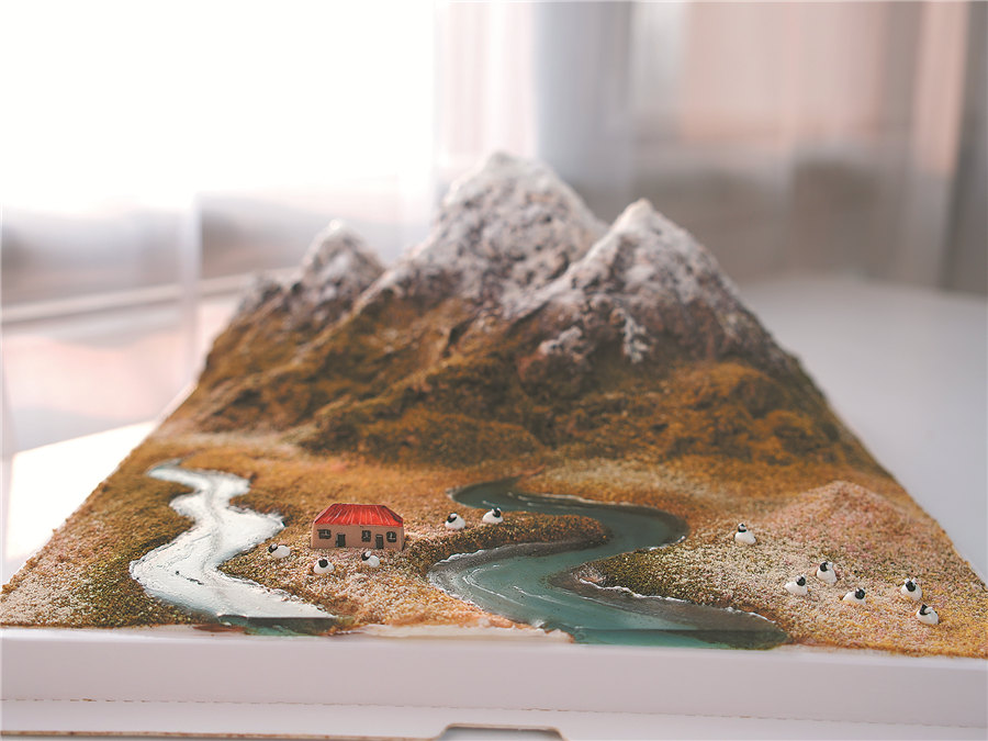 One of her most popular works is of the "world's loneliest house" in Iceland. Wang, in her 30s, did a fair job of re-creating the scenery at the destination, a bright green island surrounded by the sea, on which a tiny house with white walls and a dark roof sits.
