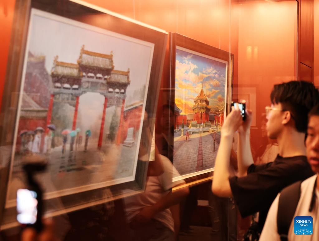 People view a painting exhibition at the Shenyang Palace Museum in Shenyang, northeast China's Liaoning Province, July 2, 2024. A series of exhibitions were held at Shenyang Palace Museum to celebrate the 20th anniversary of its inscription on the World Heritage List. (Photo by Jia Yicheng/Xinhua)