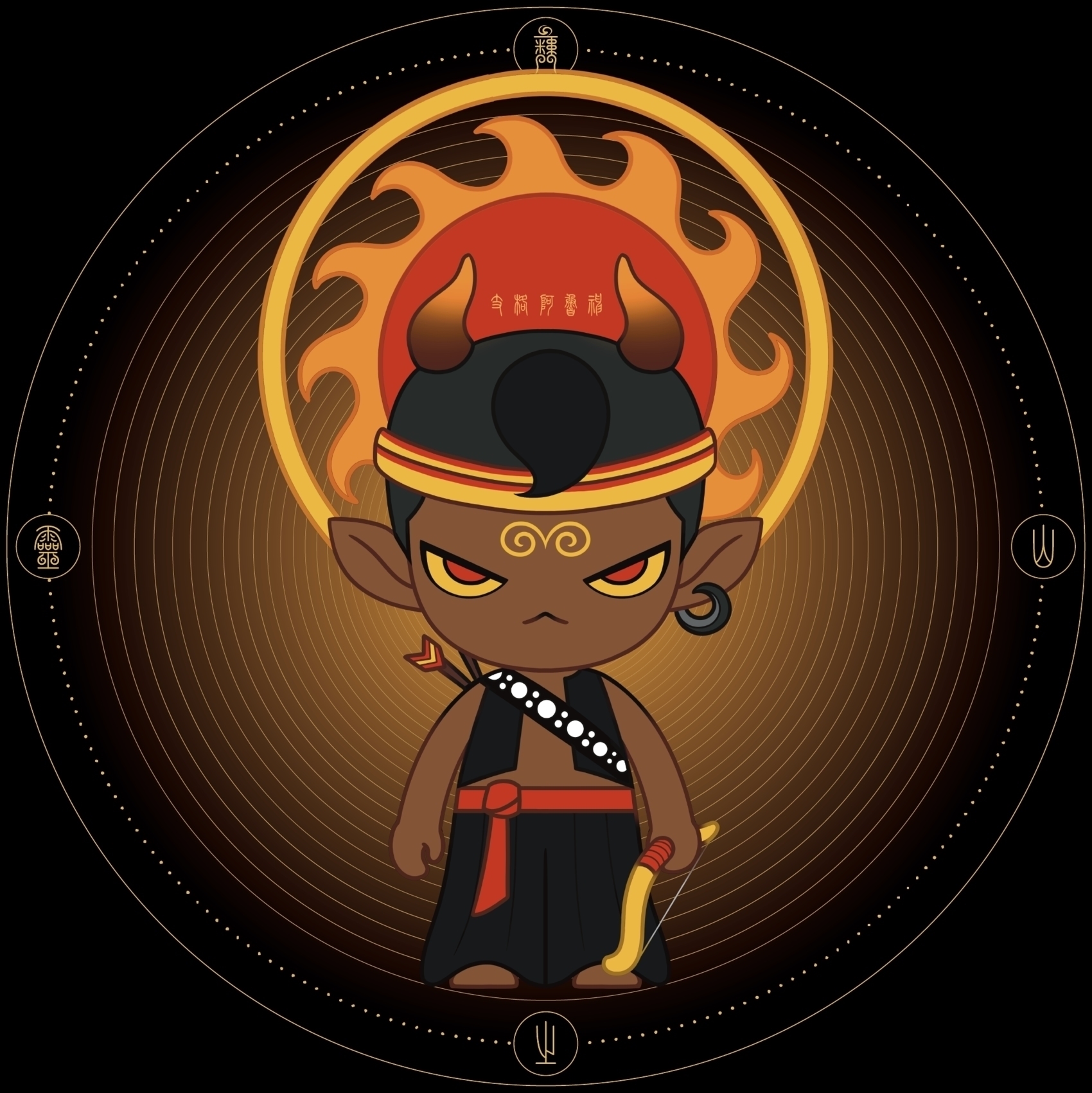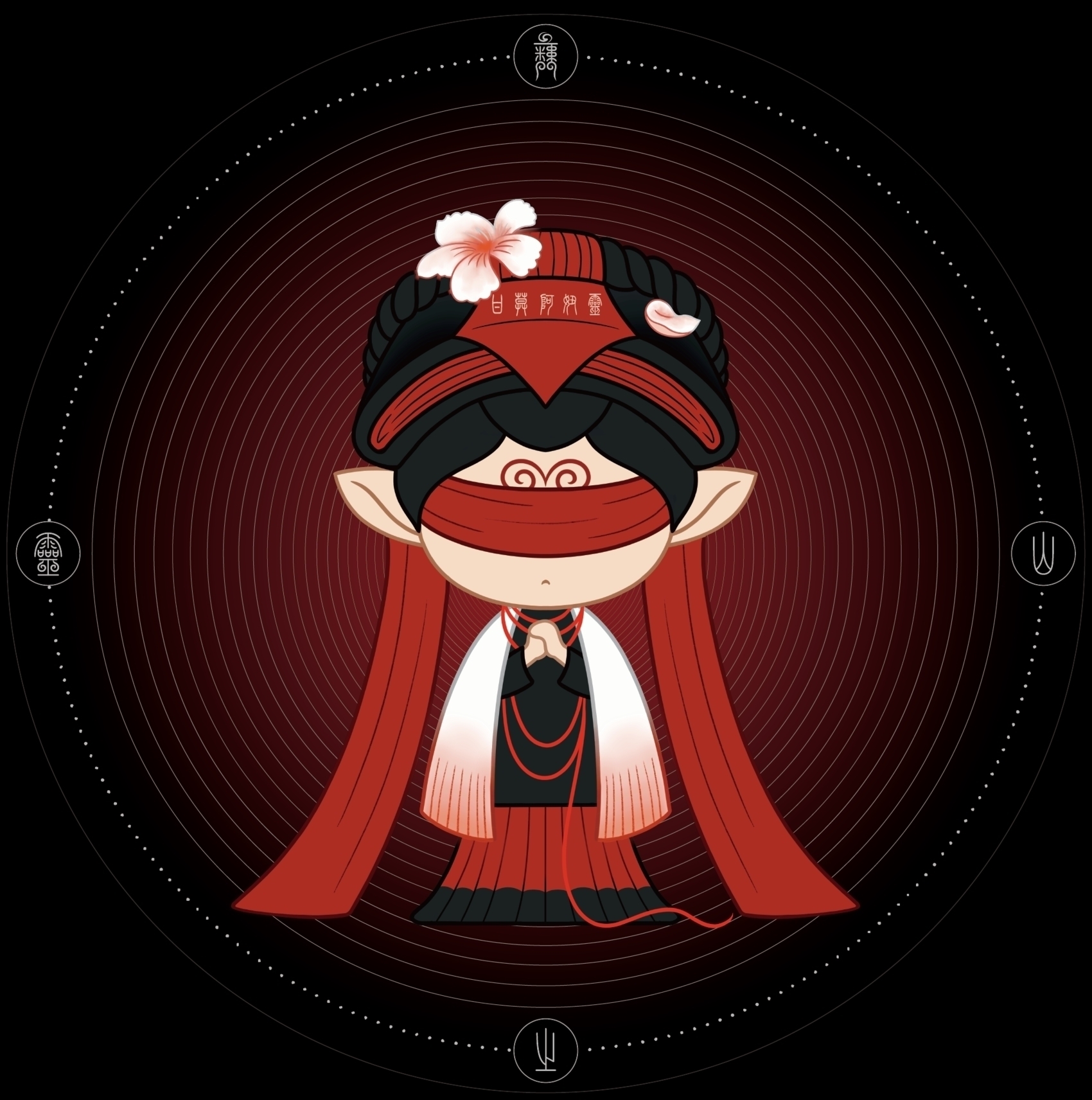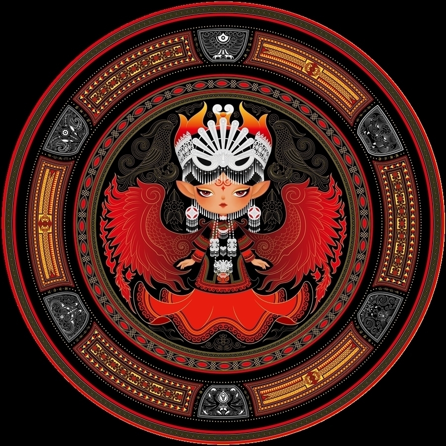 In this work, Li created 18 personalized images of the Yi deities by combining elements of traditional decorative art of the Yi people living in this area, such as patterns, costumes and Yi characters. While preserving the traditional cultural elements, Li also expresses them through a modern aesthetic style, successfully combining tradition with modernity, individuality with commonality, and nationality with the world.