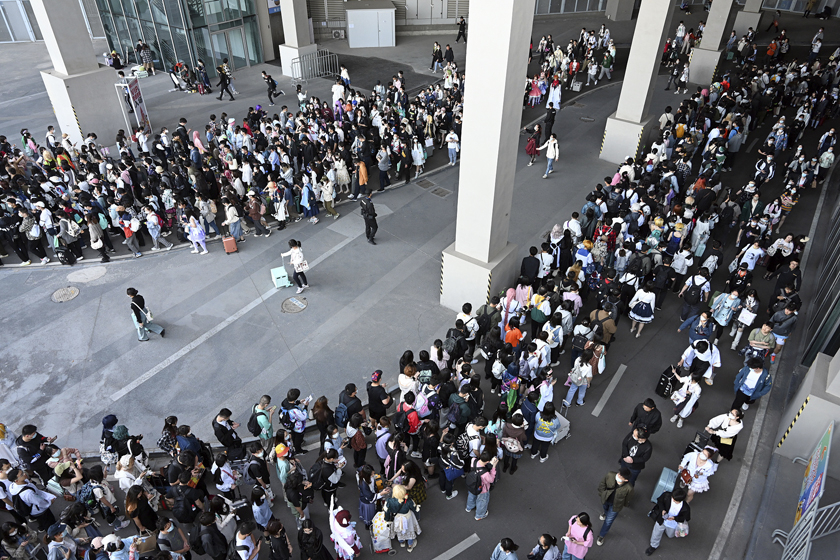 Anime fans line up Tuesday to enter the National Exhibition and Convention Center in Shanghai. COMICUP29, one of the largest anime conventions in China, ran from Tuesday to Wednesday, attracting about 300,000 attendees. Photo: VCG
