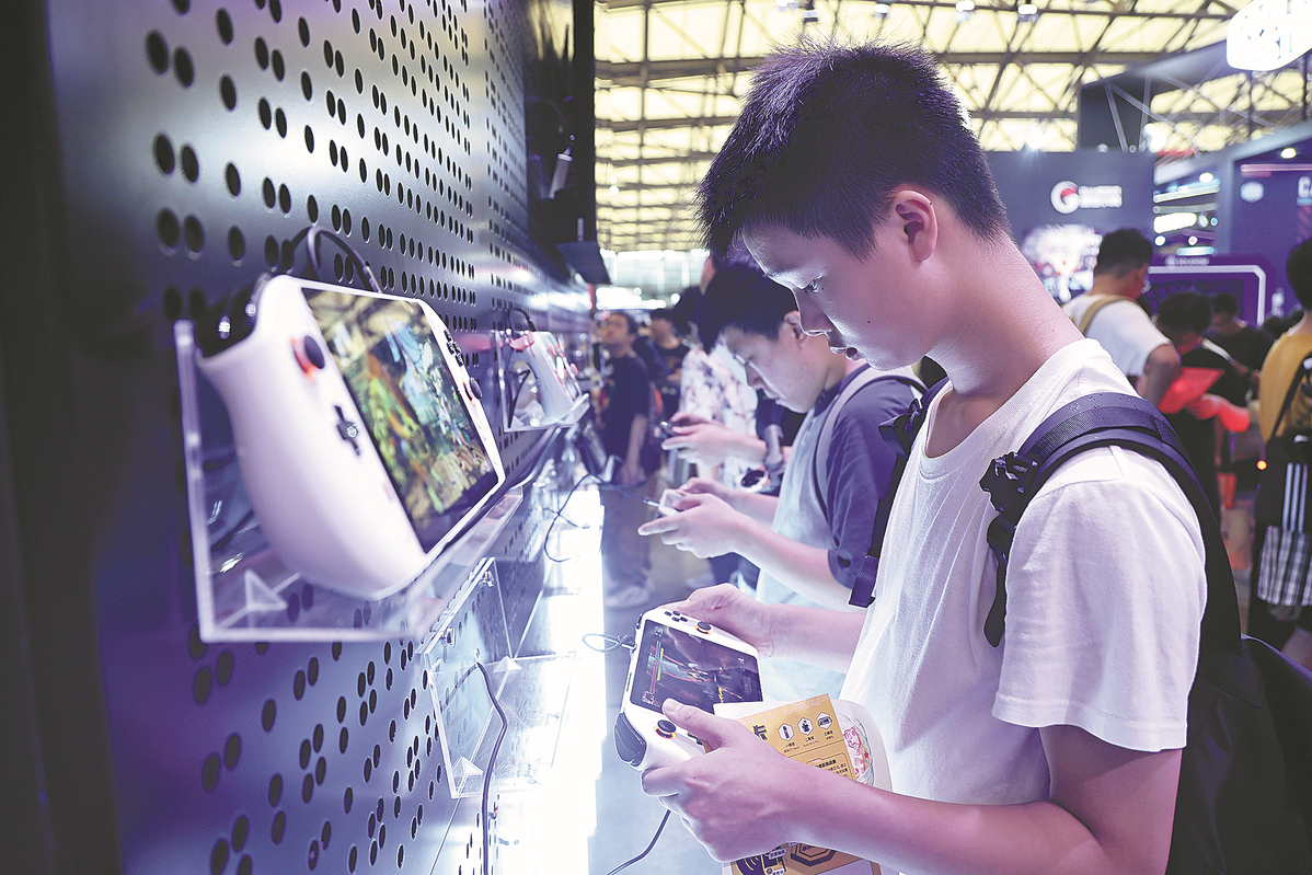 Visitors try out games at 2023 China Joy, which opened on Friday in Shanghai. [XU PEIQIN/FOR CHINA DAILY]