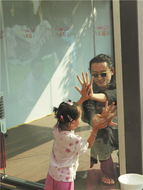 Visitors interact with the Window Project artwork. [Photo provided to China Daily]