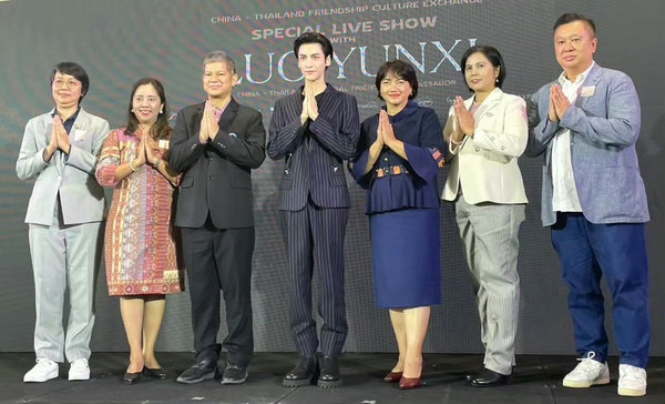 Chinese actor Luo Yunxi (center), serving as the China-Thailand Cultural Friendship Ambassador, attended a cultural exchange event in Bangkok on Nov 4. [Photo provided to China Daily]