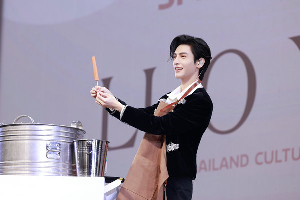 Wrapped in a dark striped suit, Luo attended one of the events on Nov 4, starting his speech with a greeting in the Thai language to introduce himself. Additionally, he promoted the delicacies and traditional culture in China, introducing that the distinctive aesthetics in his recent popular series Till the End of Moon is inspired from Mogao Caves of Dunhuang in Gansu province, the world-renowned Buddhist treasure.