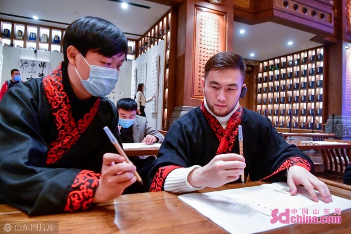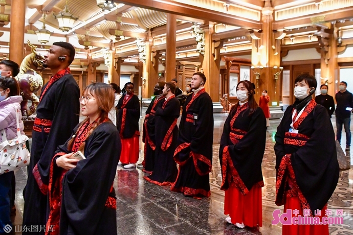 I know that Nishan is the place where Confucius was born. Today we are here to copy and write the Analects of Confucius by hand. It’s so unique. I like the atmosphere here,” said Yin Runmin from Myanmar. “I used to wear Hanfu to take photos during tradtional Chinese festivals. Today’s Hanfu is different from the Hanfu I already have. I feel like I have stepped into ancient times and become a student of Confucius, which is a great experience.”