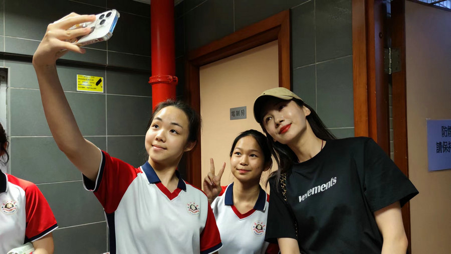 Leading dancers from China Oriental Performing Arts Group met with students in Macao. [Photo provided to China Daily]