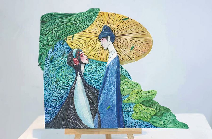 A relief artwork for the graduation project by Zheng Shuxian are based on stories of the Legend of the White Snake. CHINA DAILY