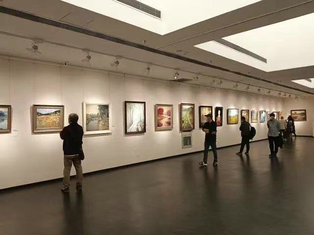 An exhibition of oil paintings in Yuhang district. [Photo provided to China Daily]