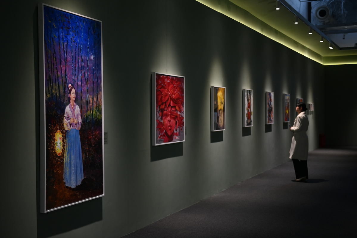 The exhibition, "Silk Road Artists' Rendezvous," features 152 works created by 84 artists from 83 countries.[Photo/Xinhua]