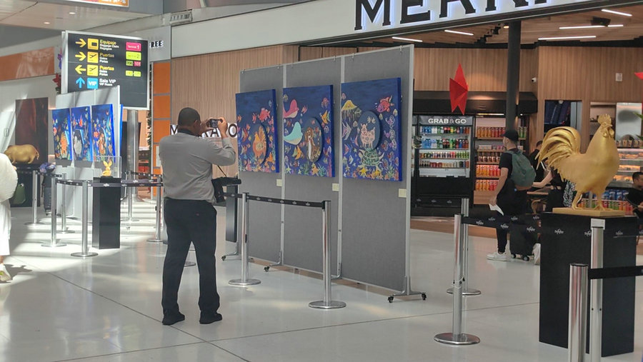 Exhibition titled Symbiosis of the Chinese Zodiac opened at the Tocumen International Airport in Panama on Dec 19, 2023. [Photo provided to China Daily]