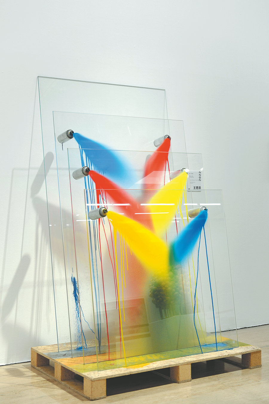 An artwork by Wang Enlai, titled Pressure Released — Glass Plate, adds color, literally, to the exhibition. [Photo provided to China Daily]
