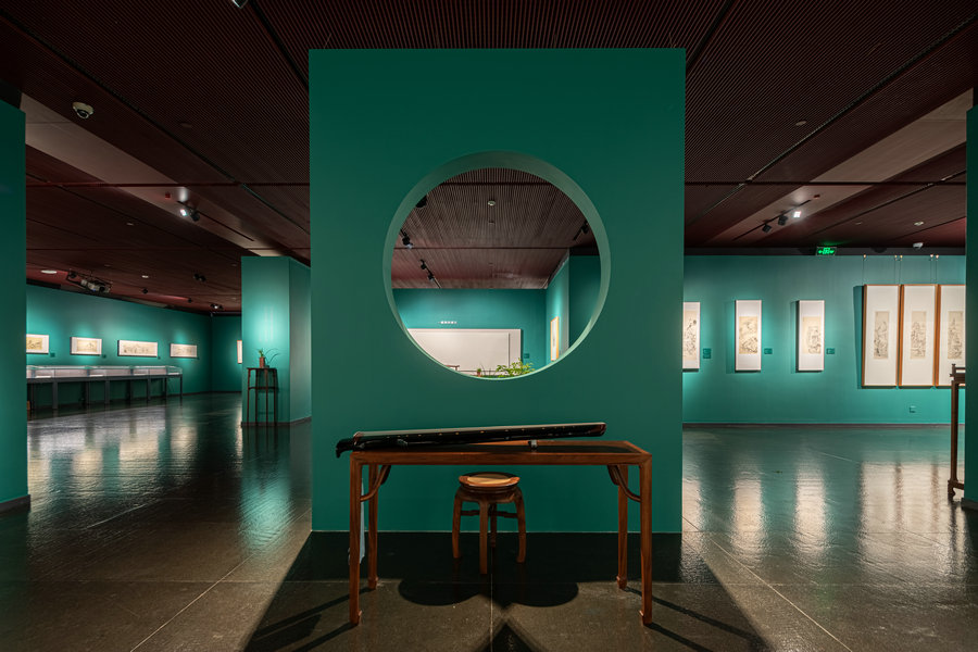 Niu Chao constructs a spiritual haven for mind and soul, enriched by mountains, waters, falls and guqinmusic, at the gallery of National Center for the Performing Arts in Beijing. [Photo provided to China Daily]