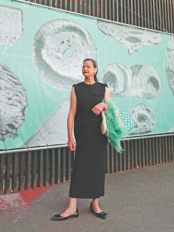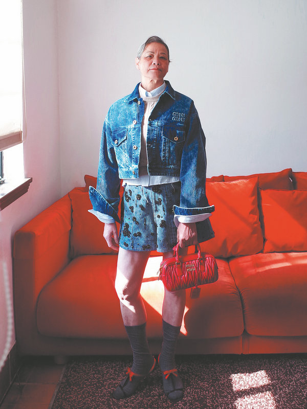 Qin displays fashionable attire, bought by her son Huang Weilai, on social media. [Photo by Huang Weilai/For China Daily]