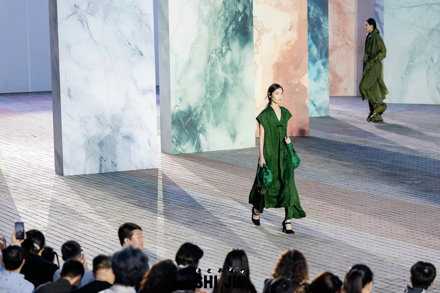 Fashion brand SHI JIE releases its 2024 A/W collection “The Child of Nature—Rough Jade” in Hangzhou, East China’s Zhejiang province on March 30, 2024. [Photo provided to chinadaily.com.cn]