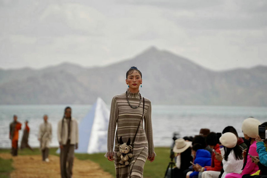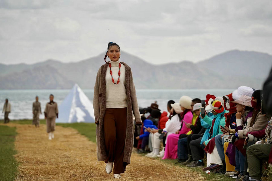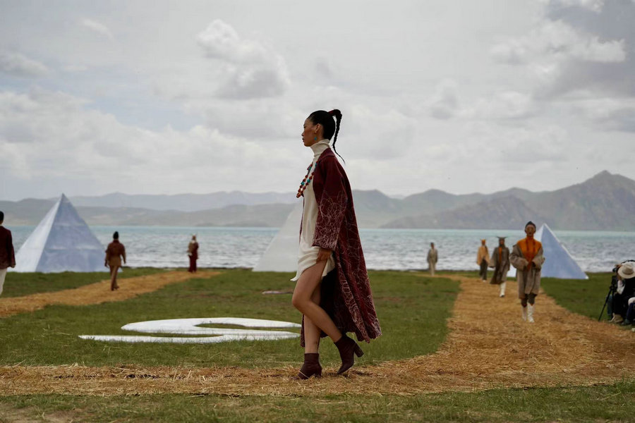 The Shanghai-based fashion brand Sandriver holds a show featuring more than 100 pieces of clothing, primarily made of yak wool on June 28 in Maduo county, Guoluo Tibetan autonomous prefecture, Qinghai province. [Photo provided to chinadaily.com.cn]