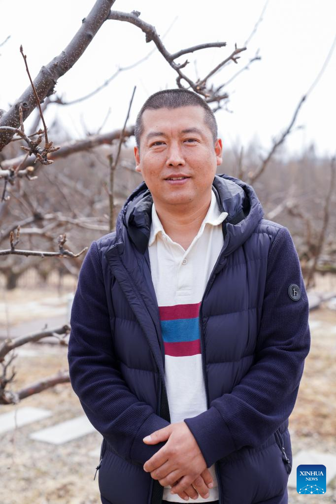 Shen Longzhe poses for a photo in Yanji, Yanbian Korean Autonomous Prefecture, northeast China's Jilin Province. Shen Longzhe, a villager in Fenglin Village of Yanji, opened a cafe in an apple pear garden of the village in 2021. This cafe soon gains popularity for its great view on the rural scenery, attracting flocks of tourists to the village. With the daily coffee sales reaching about 600-700 cups at most, this cafe also promotes the sales of local specialty apple pears in Fenglin Village. The northeastern border city of Yanji in Yanbian Korean Autonomous Prefecture has witnessed a spark of coffee trend as over 540 coffee shops are registered in the 680,000 dwellers city in recent years. According to the data from Meituan Waimai, a major food delivery platform in China, Yanji ranked first in coffee consumption among counties (including county-level cities) in China from January to February this year. (Xinhua/Yan Linyun)