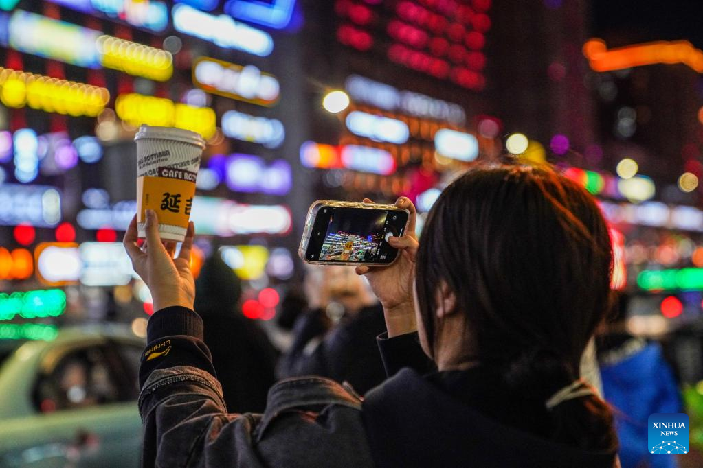 A tourist takes photos of a cup of coffee in Yanji, Yanbian Korean Autonomous Prefecture, northeast China's Jilin Province. The northeastern border city of Yanji in Yanbian Korean Autonomous Prefecture has witnessed a spark of coffee trend as over 540 coffee shops are registered in the 680,000 dwellers city in recent years. According to the data from Meituan Waimai, a major food delivery platform in China, Yanji ranked first in coffee consumption among counties (including county-level cities) in China from January to February this year. (Xinhua/Yan Linyun)