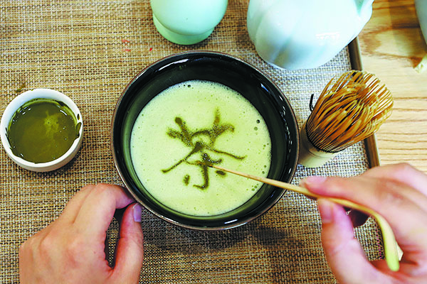 A volunteer in Potang village, Zhejiang province, performs diancha, a tea-making technique resembling latte art. [PHOTO BY ZHANG WEI/CHINA DAILY]