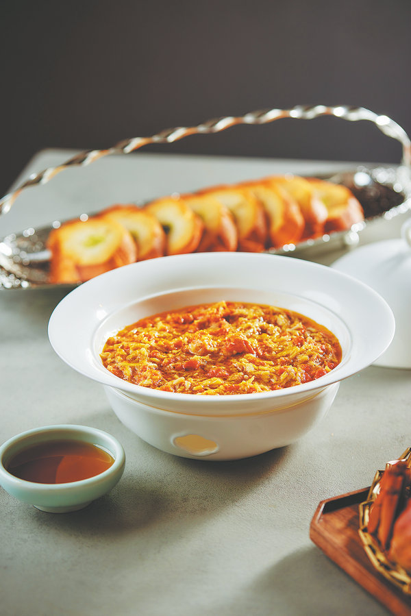 "We serve it in a modern way, allowing diners to enjoy the crab meat by placing it on a slice of toast," Wang says.