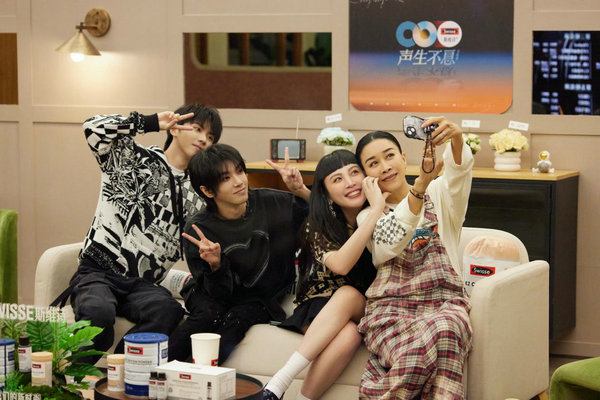 (From left to right) Singers Ma Jiaqi, Hua Chenyu, Waa Wei and Na Ying pose for a photo in scene from Infinite and Beyond. [Photo provided to China Daily]