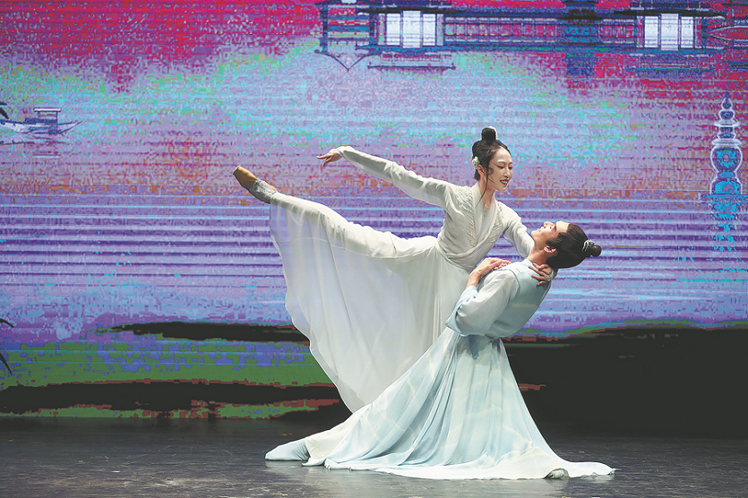Wang says that the ballet stays loyal to the original story and keeping classic scenes, such as Bai and Xu meeting on a boat on West Lake, Hangzhou's iconic scenic area in Zhejiang province, Xu giving his oil-paper umbrella to Bai when a heavy rain falls suddenly, and Bai turning into a white snake after drinking realgar wine.