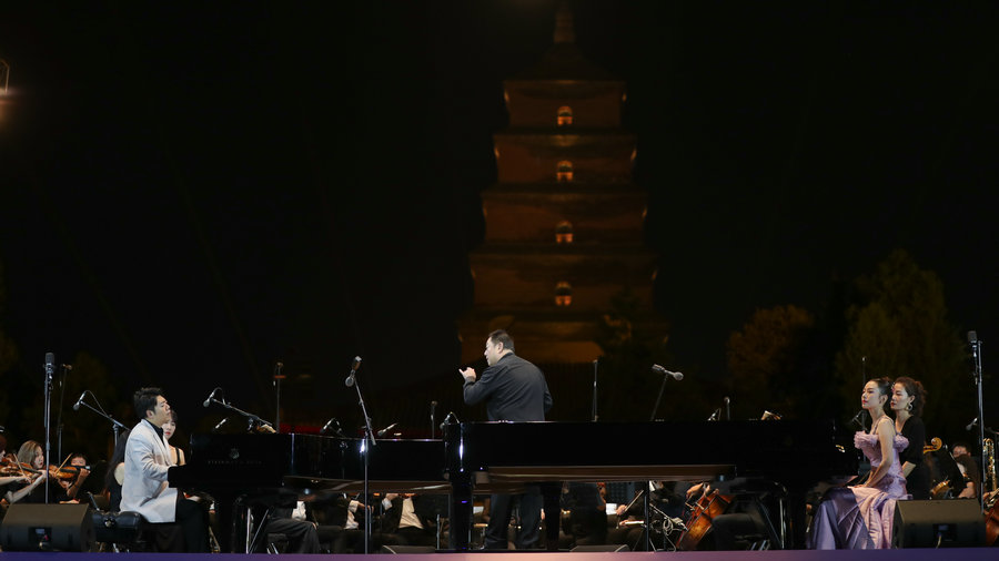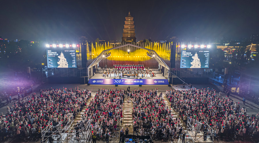 An outdoor concert by the Xi'an Symphony Orchestra took place on Sept 10, near the city's Big Wild Goose Pagoda, a famous Buddhist pagoda built during the Tang Dynasty (618-907).