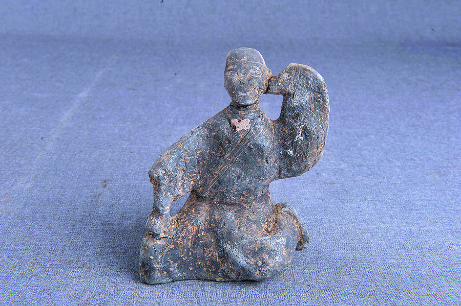 A female pottery figurine touching her ear from the Eastern Han Dynasty (25-220). [Photo provided to China Daily]