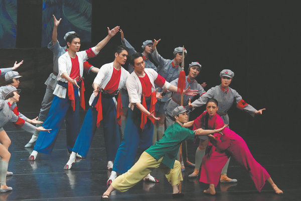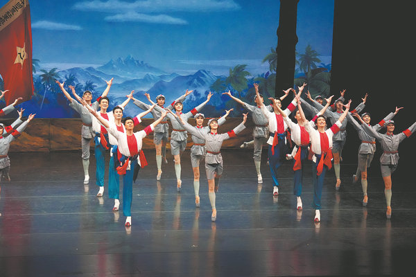 The heroine of the classic ballet Red Detachment of Women, Wu Qionghua (right, front), played by Qiu Yunting, joins a legendary all-female Red Army battalion. [Photo provided to China Daily]