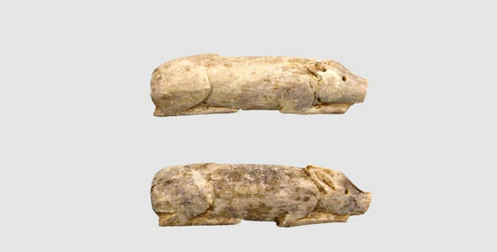 This undated photo provided by cultural relics and archaeology institute of Zhenjiang city shows pig-shaped stone carving discovered from a noble tomb in a cemetery dating back to the Six Dynasties period (222-589) in the city of Zhenjiang, East China's Jiangsu province. [Photo/Xinhua]