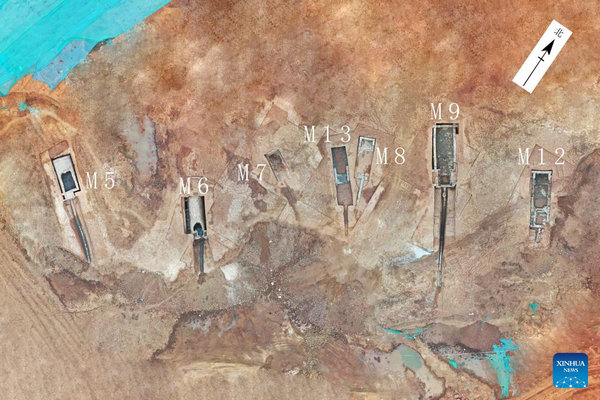 This undated aerial photo provided by cultural relics and archaeology institute of Zhenjiang city shows a cemetery dating back to the Six Dynasties period (222-589) discovered in the city of Zhenjiang, East China's Jiangsu province. [Photo/Xinhua]
