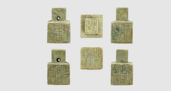 This undated photo provided by cultural relics and archaeology institute of Zhenjiang city shows a six-sided bronze seal discovered at a noble tomb in a cemetery dating back to the Six Dynasties period (222-589) in the city of Zhenjiang, East China's Jiangsu province. [Photo/Xinhua]