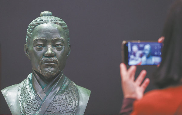 The 3D reconstruction of the owner of a Qin Dynasty (221-206 BC) tomb unearthed at Shuihudi village, Hubei province, is displayed at a news conference in the province's capital Wuhan in late March. ZHANG CHANG/CHINA NEWS SERVICE