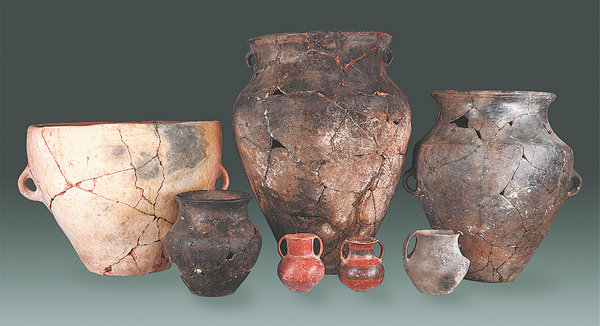 Pottery vessels unearthed from tombs at the Xia'eryamakebu Site in Dulan county, Qinghai province. [Photo provided to China Daily]