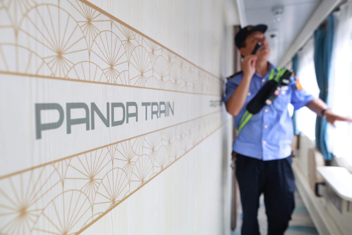 The panda-themed train is a high-end boutique tourist train operated by China Railway Chengdu Group Co Ltd. Travelers can take the "Panda Train" to Xishuangbanna in Yunnan province before transferring to the China-Laos Railway's international trains to visit sites in Laos, such as the capital Vientiane, Vang Vieng and Luang Prabang.