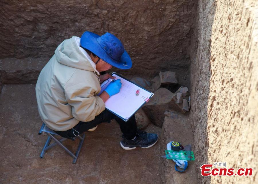 Photo released on Dec. 3, 2024, shows an archeologist working at the excavation site of a tomb complex dating from the Warring States period (475 BC-221 BC) to the Eastern Han Dynasty (25-220) in Luohe, central China's Henan Province. (China News Service/Yang Guang)