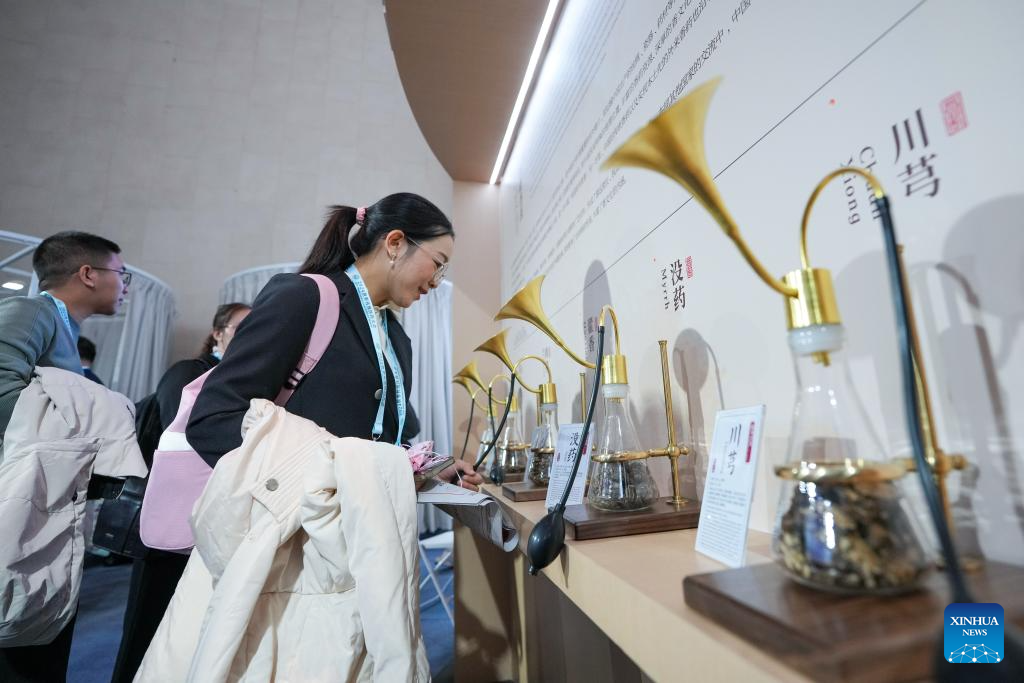 Delegates visit an experience area during the 2024 World Conference on Traditional Medicine in Beijing, capital of China, Dec. 3, 2024. The conference kicked off Tuesday in Beijing under the theme "Diversity, Inheritance and Innovation: Traditional Medicine for All." (Xinhua/Ju Huanzong)