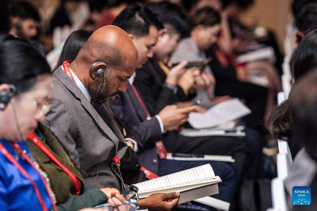 Participants attend a panel discussion during the 3rd Yunnan International Communication Forum in Xishuangbanna, southwest China's Yunnan Province, Dec. 10, 2024. The 3rd Yunnan International Communication Forum opened here on Tuesday. More than 200 scholars, officials and media representatives from 21 countries attended the forum. (Xinhua/Gao Yongwei)
