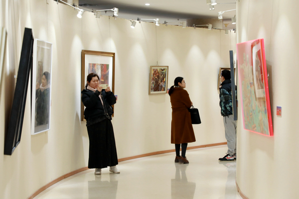 Dozens of paintings, oils, prints, watercolors and lacquer works are on show at the gallery of the China Federation of Literary and Art Circles in Beijing, in celebration of the 25th anniversary of Macao's return to the motherland.